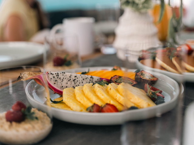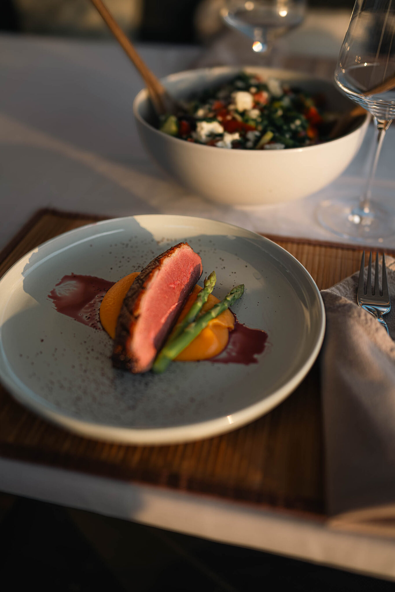 Dinner is usually composed of the catch of the day, BBQ straight off the grill, a vegan option, and some local or European gourmet dishes.