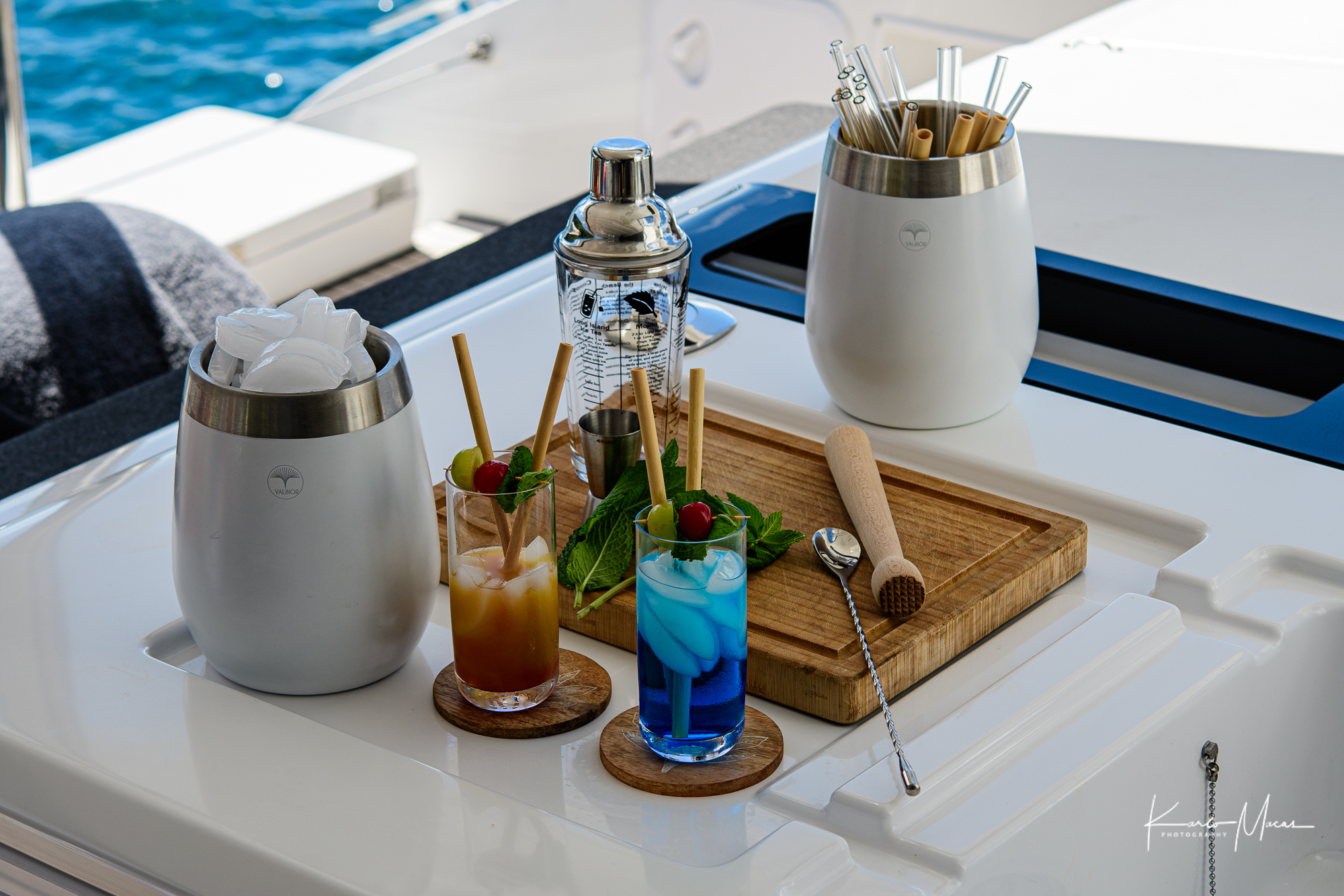 With a full bar onboard, we can also whip up some refreshing cocktails like a Mojito, Daiquiri, Margarita, Rum & Coke, and more.