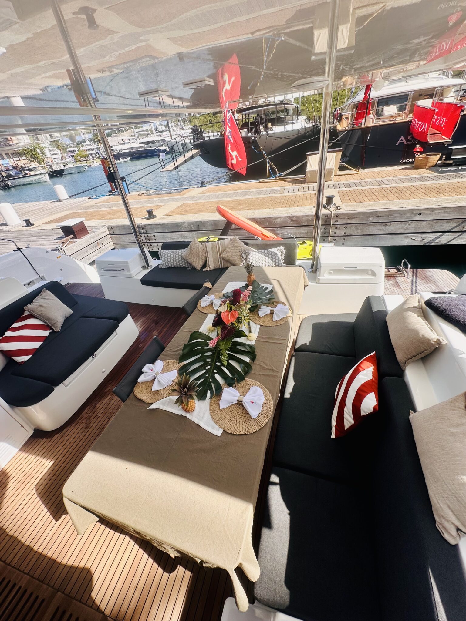With 5+2 cabins, each lavishly furnished and equipped for the utmost comfort, we can adequately accommodate larger groups of friends and families. We’ve even turned both decks into the perfect holiday hangout spots, complete with sun loungers and a full bar.